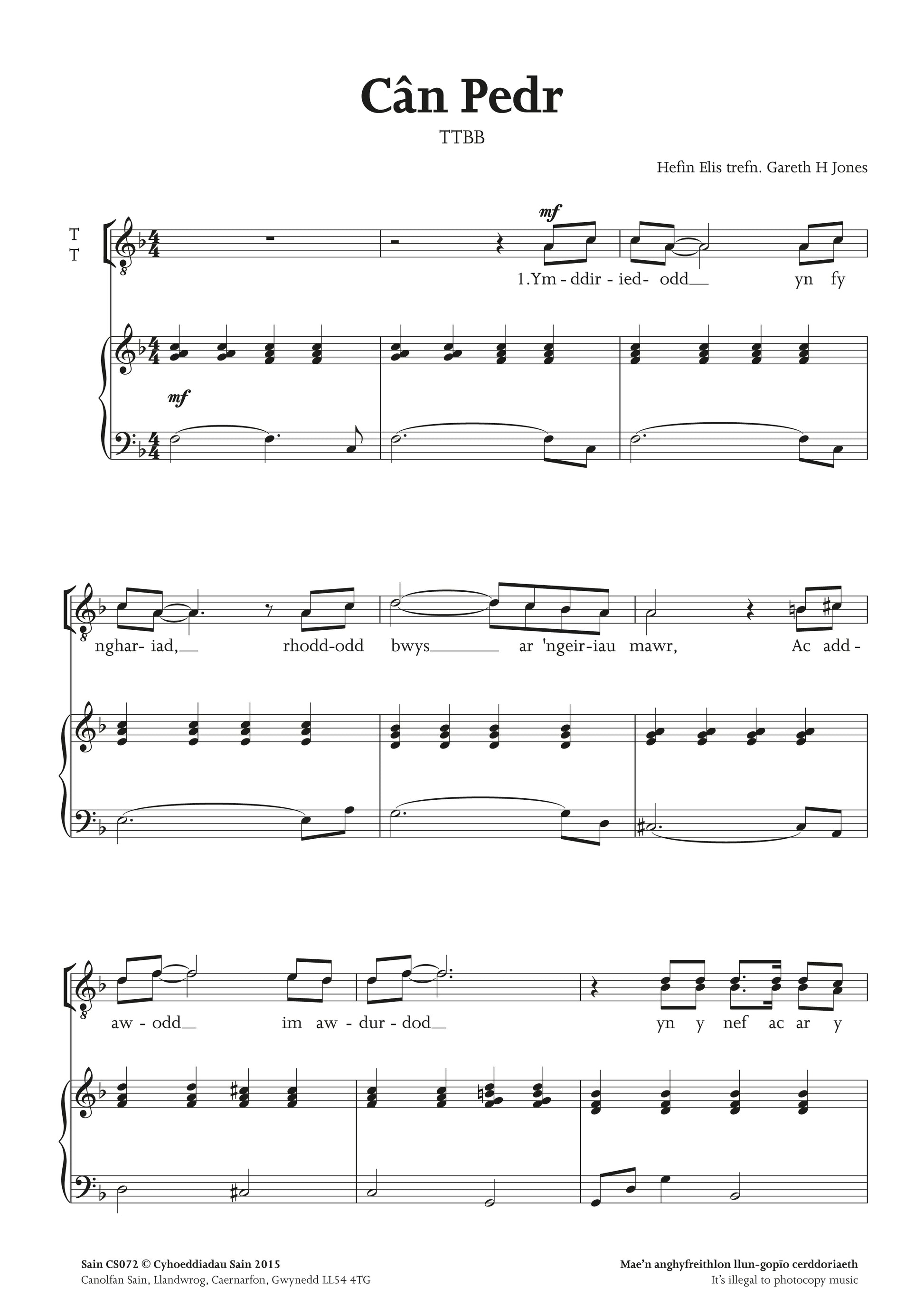 Cân Pedr (ttbb) ~ Digital Sheet Music Download (PDF)