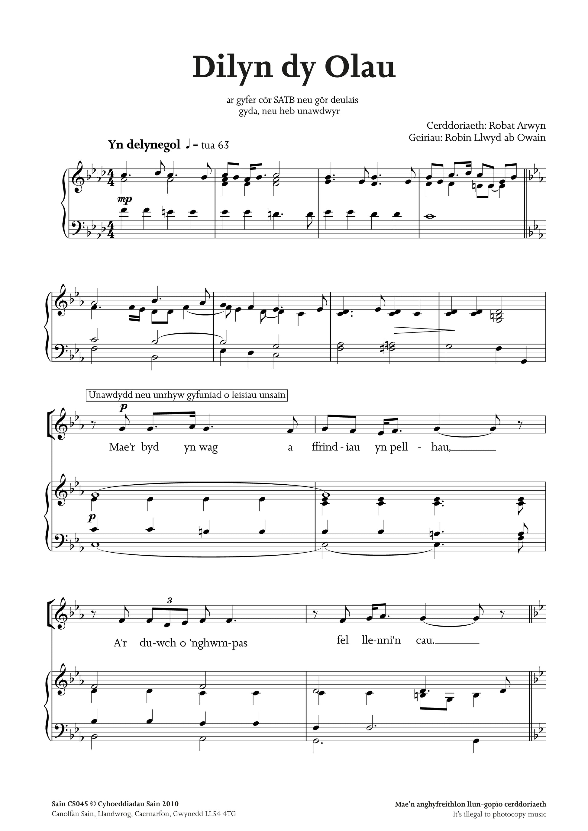 Dilyn dy Olau (satb/deulais/unawdwyr) ~ Digital Sheet Music Download (PDF)