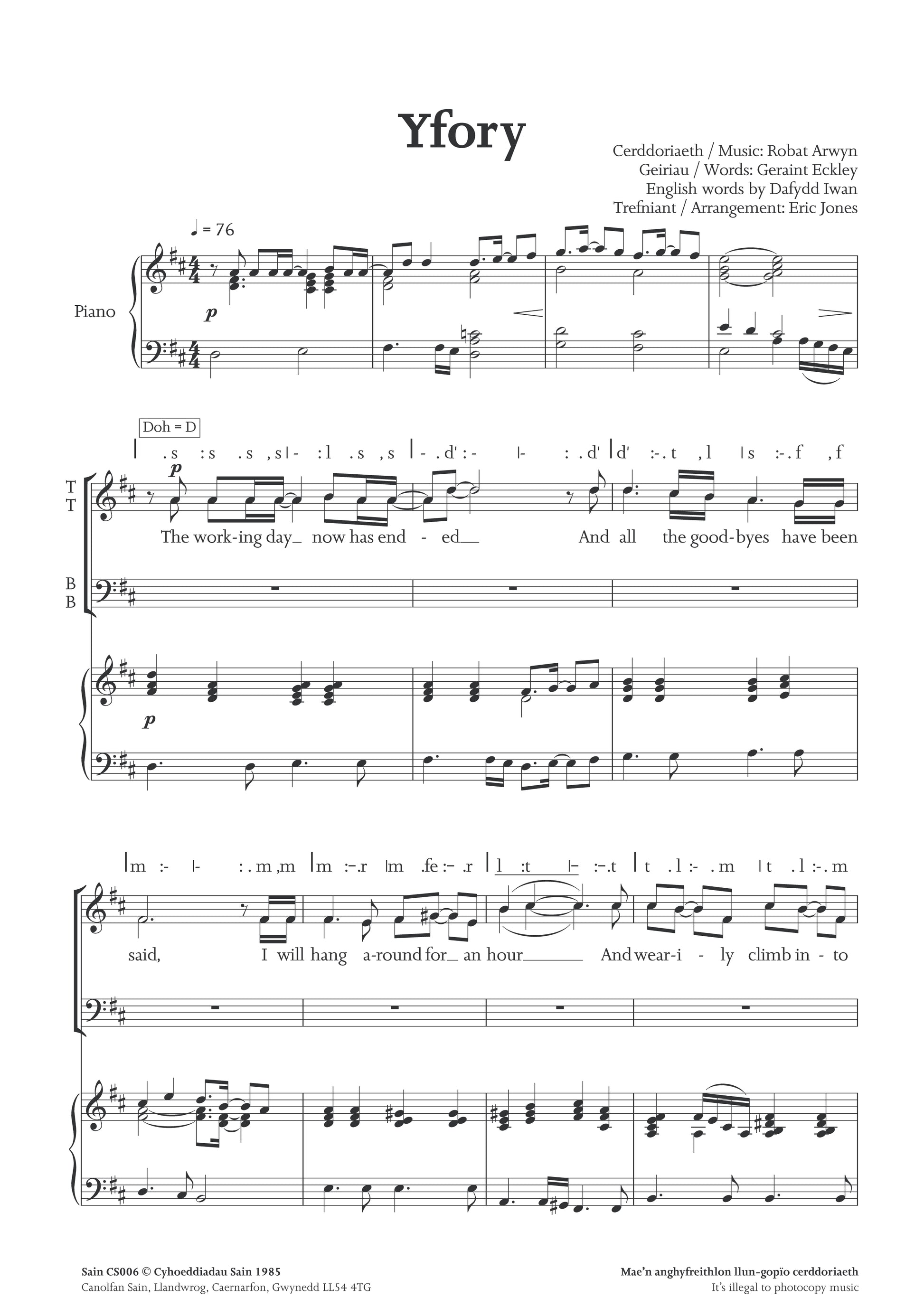 Trefniant / Arrangement: Eric Jones